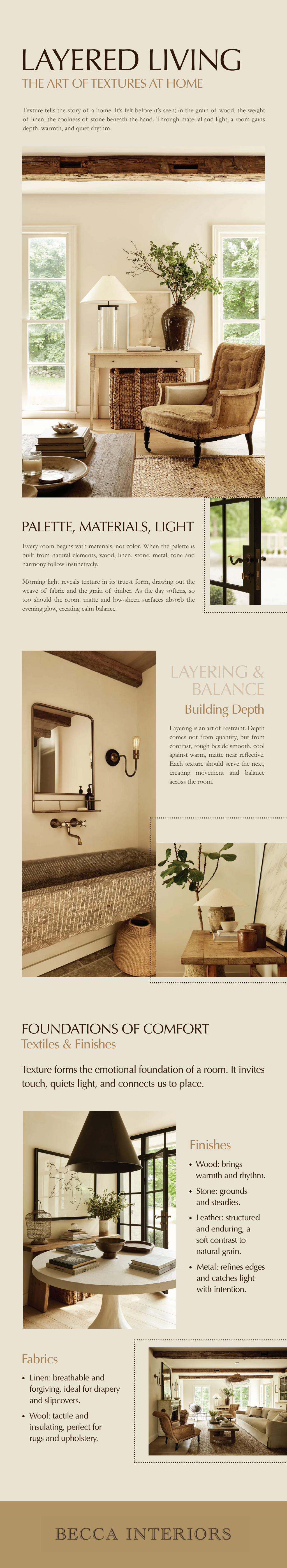 Texture is an essential part of creating a well-balanced home. By combining materials, layering fabrics, and adding simple decor, any space can feel more complete and inviting. Thoughtful use of texture helps turn a house into a comfortable and visually appealing home. Look over the infographic below for more information.